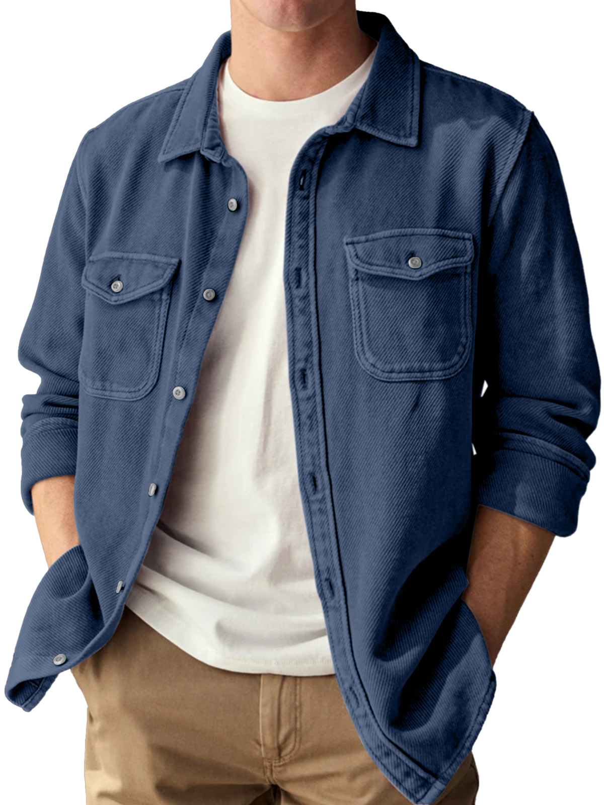 Basic Vintage Doppelter Taschen Revers Knopf-Down Langarmhemd