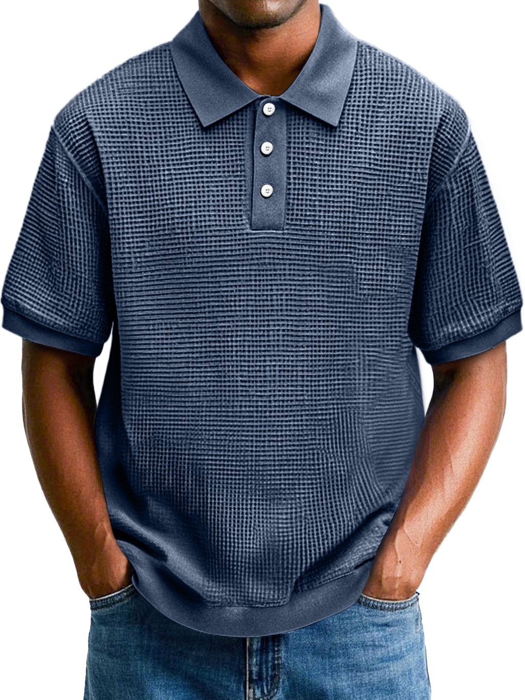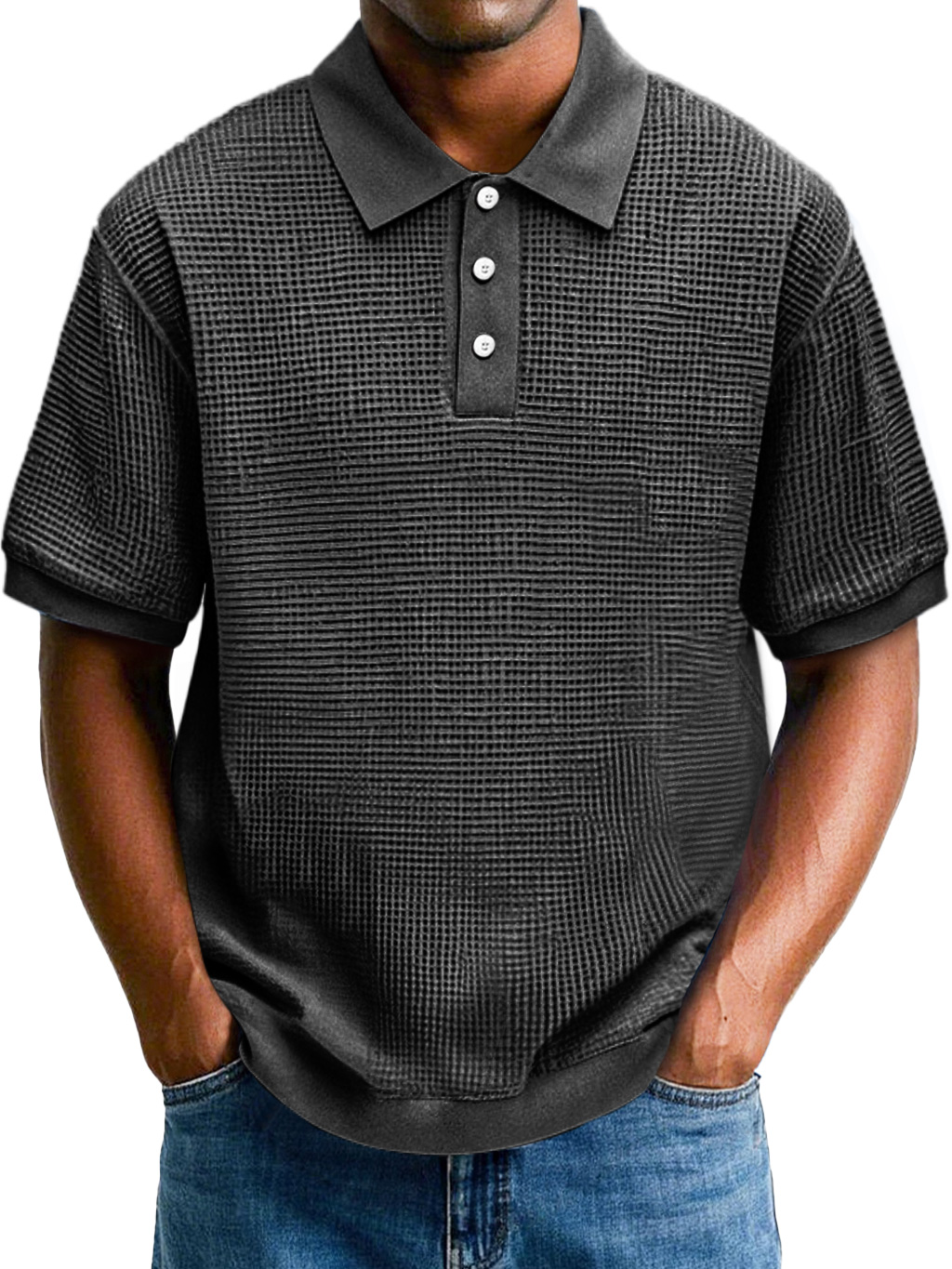 Herrenmode Waffel Revers Freizeit Komfort Kurzarm POLO Hemd